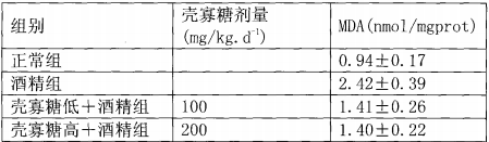 上图表说明壳寡糖能有效地降低由酒精引起的血清中丙氨酸转氨酶的升高,抵制酒精带来的氧化压力,降低脂质过氧化产物的产生。