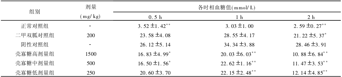 由上图表看出,壳寡糖各组对0.5h、1h和2h血浆葡萄糖浓度均有较大程度降低。