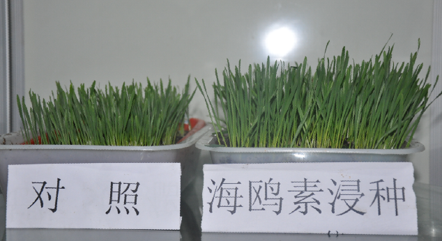 该公司利用壳寡糖进行复配开发出一款新型生物肥料,在实验室做了相关验证,将该产品稀释1000倍,壳寡糖含量为50g/L,用小麦、花生进行浸种试验,大约浸种24h,然后在营养钵内播种,然后进行常规浇水管理,试验周期为两个月。