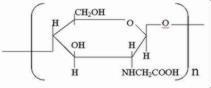 羧甲基壳聚糖(CAS:83512-85-0)是甲壳素的一种重要衍生物,是由于科学发展的需要,化工合成产物,在将来人们的日常生活中将有广泛的用途,尤其是在医药、化工、环保、保健品等领域。它是由甲壳素经酸或碱性条件下脱乙酰制成壳聚糖,再由壳聚糖在适当条件下(一般为碱性条件下)与氯乙酸反应制取而成。与甲壳素、壳聚糖相比较而言,它的优点在与能在中性、碱性及微酸性水中溶解,且性质较稳定。