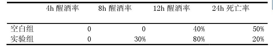 表1 小鼠在不同阶段的醒酒率和24h后的死亡率