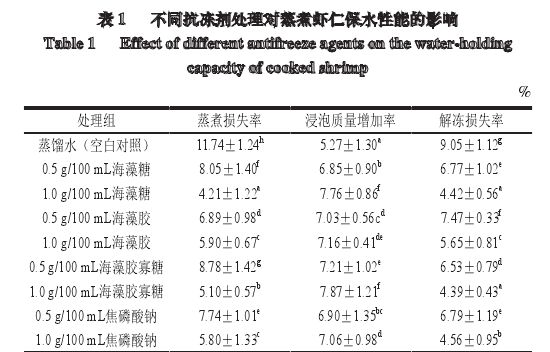由此可见,褐藻胶寡糖可作为冷冻蒸煮水产品复合磷酸盐保水剂的一种较好替代品,为水产品无磷保水剂的开发提供参考方案。