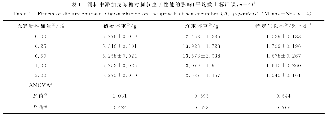 本次试验以刺参为研究对象,通过在饲料中添加0、0.25%、0.5%、1.00%、2.00%的壳寡糖,研究其对刺参生长、免疫及抗病力的研究。