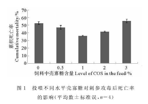 3、壳寡糖降低了灿烂弧菌攻毒后刺参的死亡率;