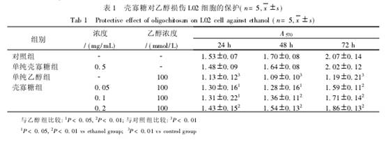 1.壳寡糖对乙醇损伤L02细胞的保护