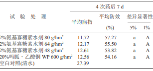 2%氨基寡糖素水剂防治番茄病毒病(黄瓜花叶病毒 CMV、烟草花叶病毒 TMV 及番茄黄化曲叶病毒 TYLCD),药效试验表明,在4次施药后7d,药剂处理的植株叶片黄化卷曲有所缓解,小叶数量有所减少;试验药剂 2%氨基寡糖素不同处理 80g/亩、64g/亩和48 g/亩与对照药剂20% 吗胍·乙酸铜 WP 600g/亩对番茄病毒病的防效无显著差异。