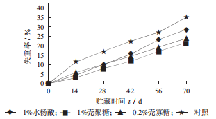核桃鲜果因口感好、富含不饱和脂肪酸,具有抗衰老、健脑等保健功能,因而深受人们的喜爱。但是,青皮核桃采后呼吸旺盛,含水量高,贮藏期间青皮会发生开裂、失水皱缩、褐变、腐烂等问题,一般情况下难以贮藏,鲜食期短,严重影响鲜核桃的品质,使其商品性降低。壳聚糖、壳寡糖和水杨酸作为水果的天然保鲜剂,在果蔬贮藏中取得了良好的保鲜效果,有很好的应用前景。