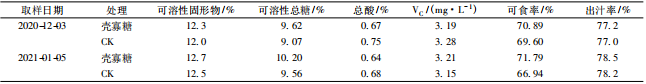 表1 壳寡糖处理对瓯柑品质的影响